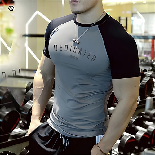Per uomo Maglietta da palestra Maglia a compressione Camicia fitness Girocollo Maniche Corte Casual Quotidiano Palestra Asciugatura rapida Alta elasticità Traspirazione del sudore Patchwork Blocco di